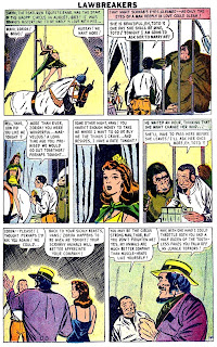 "Kid Melton" would be just another anonymous crime story from an average issue of Lawbreakers Always Lose, which came out of the Timely/Marvel/Atlas bullpen of the late 1940s, but it achieved some notoriety when the splash panel was included in the infamous Seduction Of The Innocent by Fredric Wertham, M.D. I've had several postings featuring this book, and if you want more information click on Fredric Wertham in the labels below this posting.