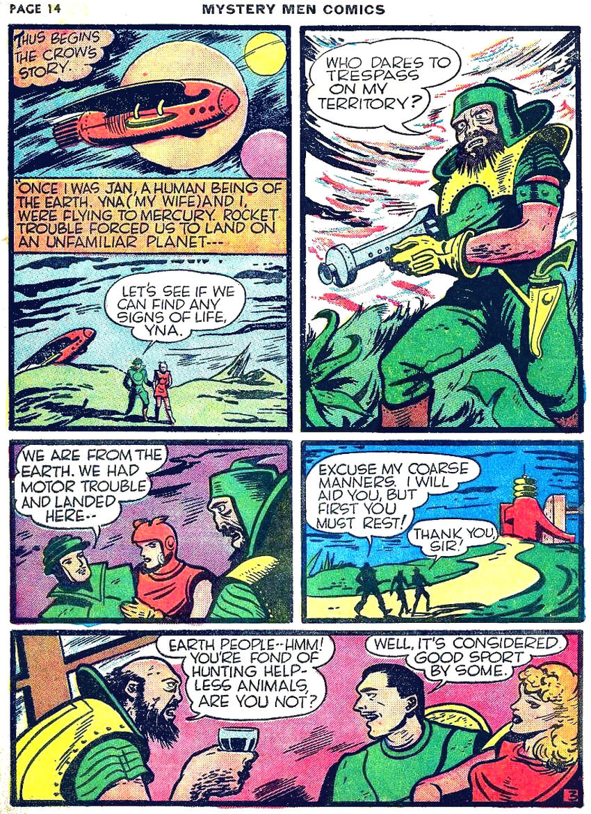 Rex was shacked up—or more properly “rocketed up,” since they lived in Rex’s spaceship—with Earth girl Cynde, whom Rex rescued in his first appearance in Mystery Men #1 in 1939. Rex lasted through Mystery Men #24, in addition to an issue of his own comic.